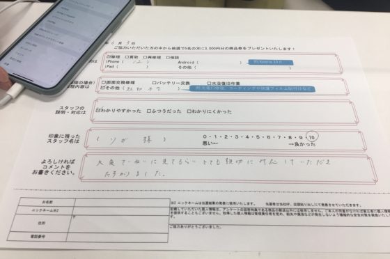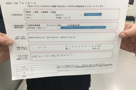 弊社の修理サービスをご利用いただいきましたお客様の声です。