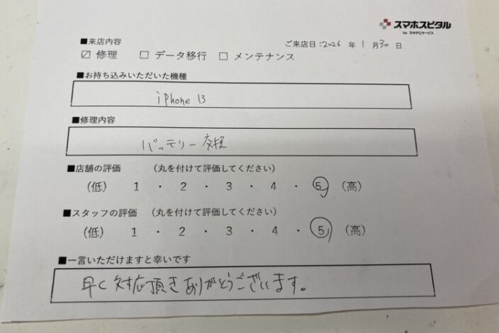 端末の状態や混雑状況によって所要時間が異なりますので受付時にご確認ください。ご依頼の際には、修理時間の目安をお伝えしております。