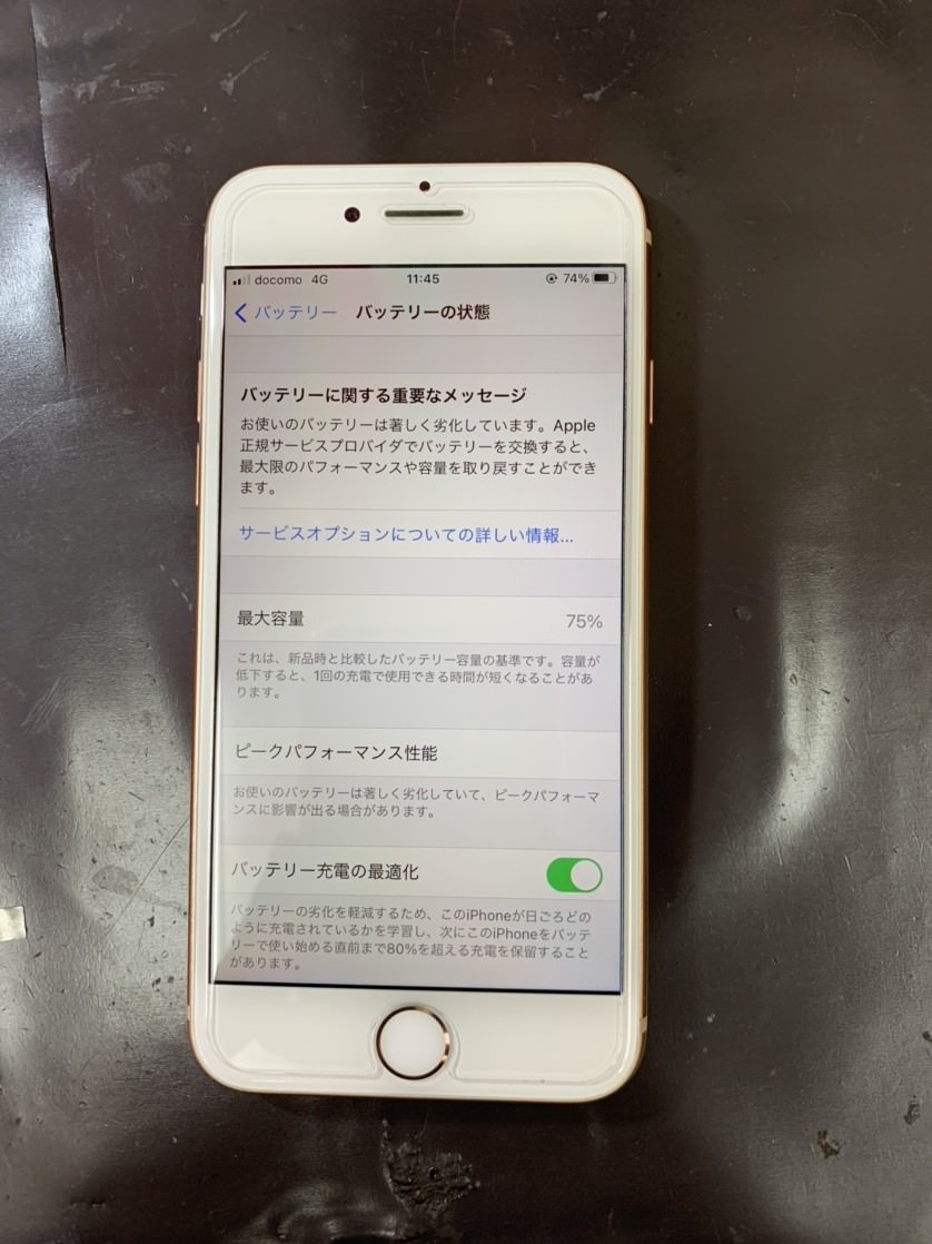 また設定アプリから確認できる【バッテリーの最大容量】が【75パーセント】まで低下しているとのこと。