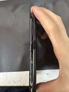 こちらが、持ち込みいただいた端末になります。バッテリーが膨張してきてしまっていて画面が浮いてしまっていますね。
