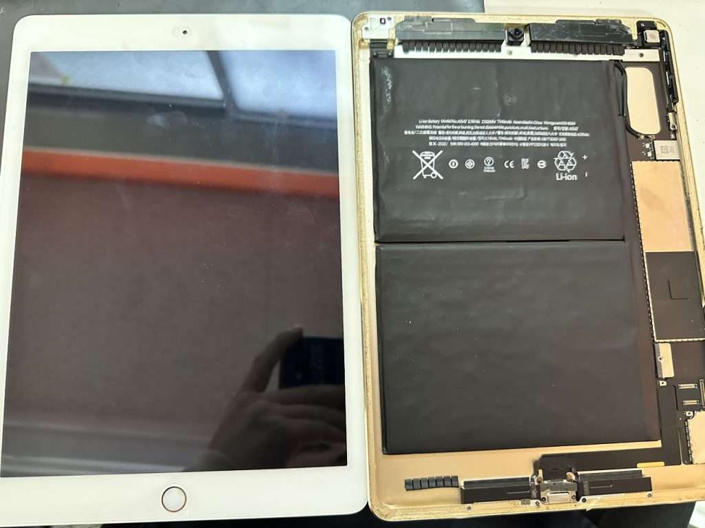 分解が完了しました。バッテリーが若干ボコっと膨らんでいますね。