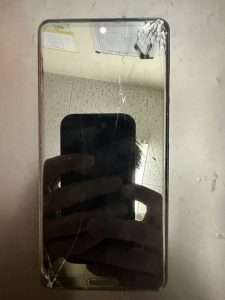 症状としましては、画面が割れてしまったので直してほしい。という事でお問い合わせいただき端末をお持ちしていただきました。