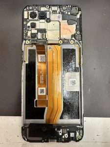 こちらが分解した端末になります。分解が必要なパーツはすべて外しこの端末はバッテリーも外さないと画面の交換はできないのでバッテリーもはずしています。