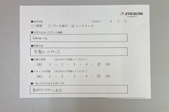 【お客様の声】iPhone14の充電口のメンテナンスをさせていただきました。