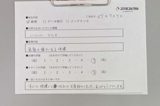 【お客様の声】Nintendo Switchの液晶の交換をさせていただきました。