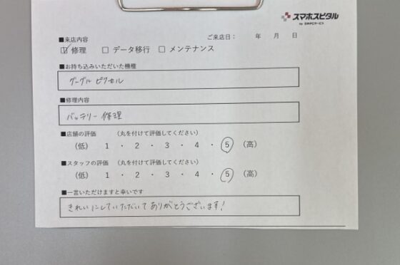 【お客様の声】GooglPixel6のバッテリーの交換をさせていただきました。