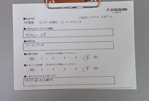 【お客様の声】iPhoneXRの画面交換をさせていただきました。