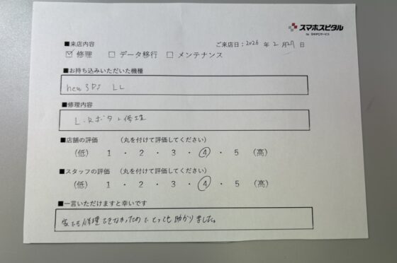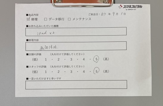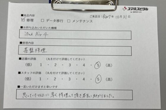 弊社の修理サービスをご利用いただいきましたお客様の声です。