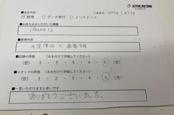 【お客様の声】iPhone12の画面を交換修理させていただきました。