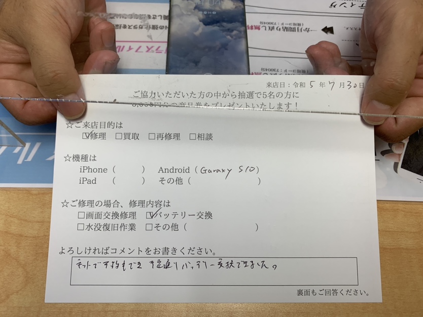 スマホスピタル神戸三宮 Galaxy S10のバッテリー交換をしました!