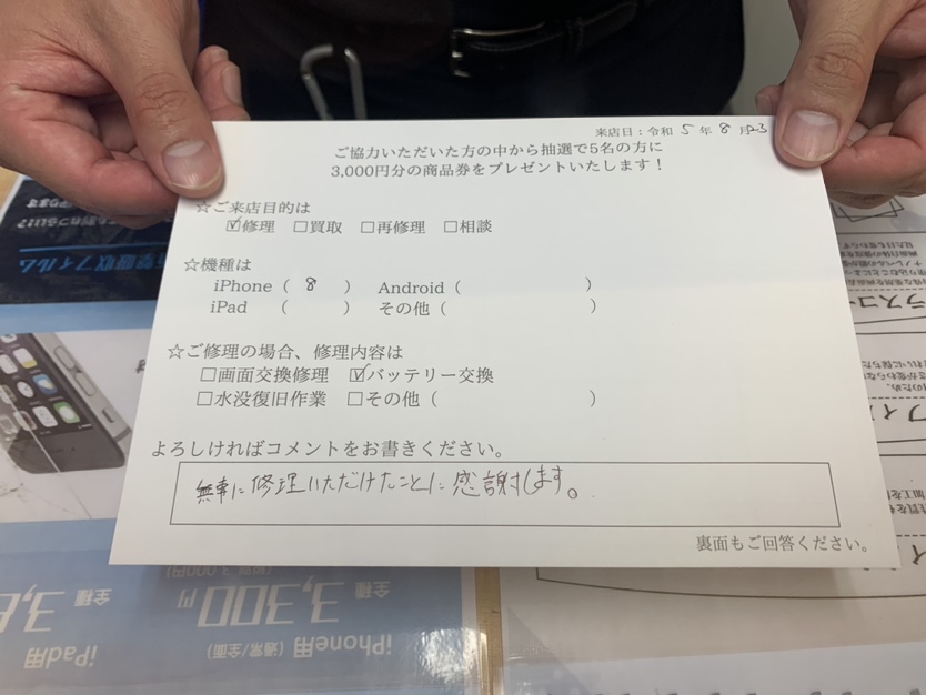 スマホスピタル神戸三宮 iPhone 8のバッテリー交換をしました!