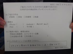 【お客様の声】AQUOS Zero6のバッテリーを交換修理させていただきました。