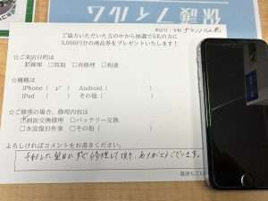 予約した翌日にすぐ修理して頂きありがとうございます。