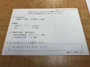 スマホスピタル神戸三宮 【お客様の声】iPhone11Proのバッテリー交換をさせていただきました。