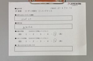スマホスピタル神戸三宮 【お客様の声】iPad7×2台のガラスの交換をさせていただきました。