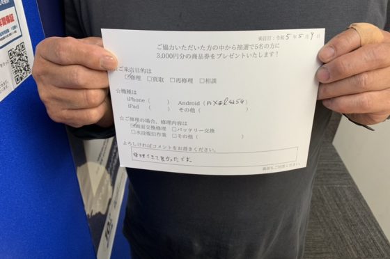 弊社の修理サービスをご利用いただいきましたお客様の声です。