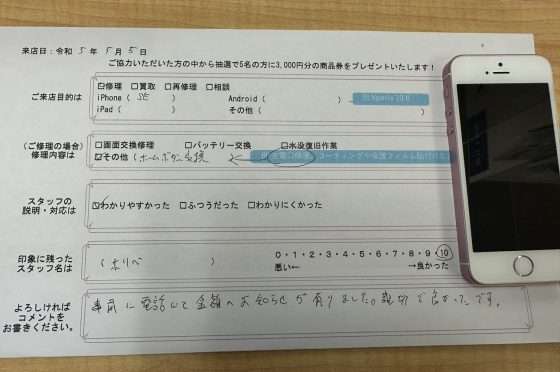 iPhoneSEのホームボタン交換修理をおこないました!