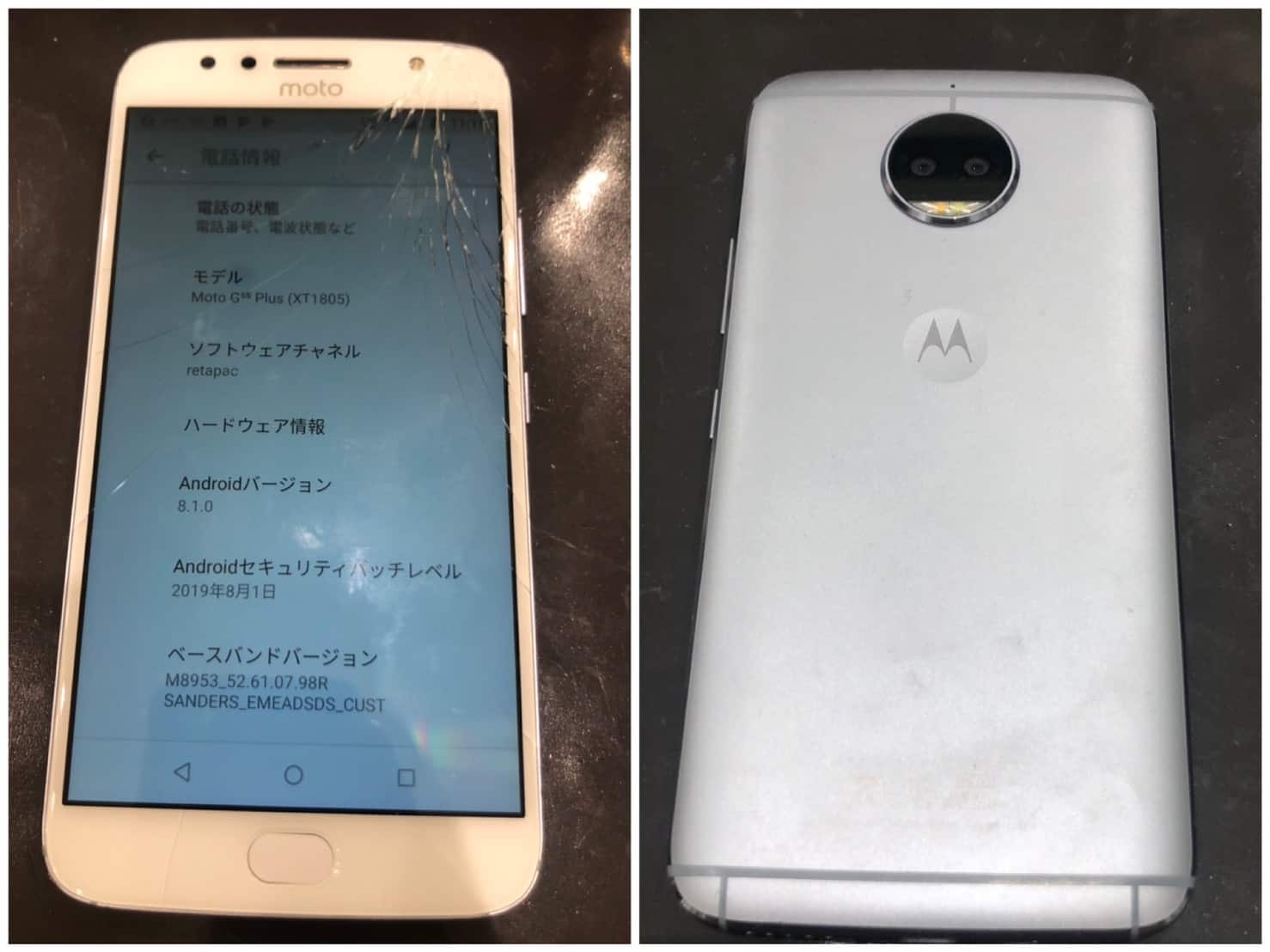 機種はMotorola社のMoto G5s Plus(型番:XT1805)というスマホでした。