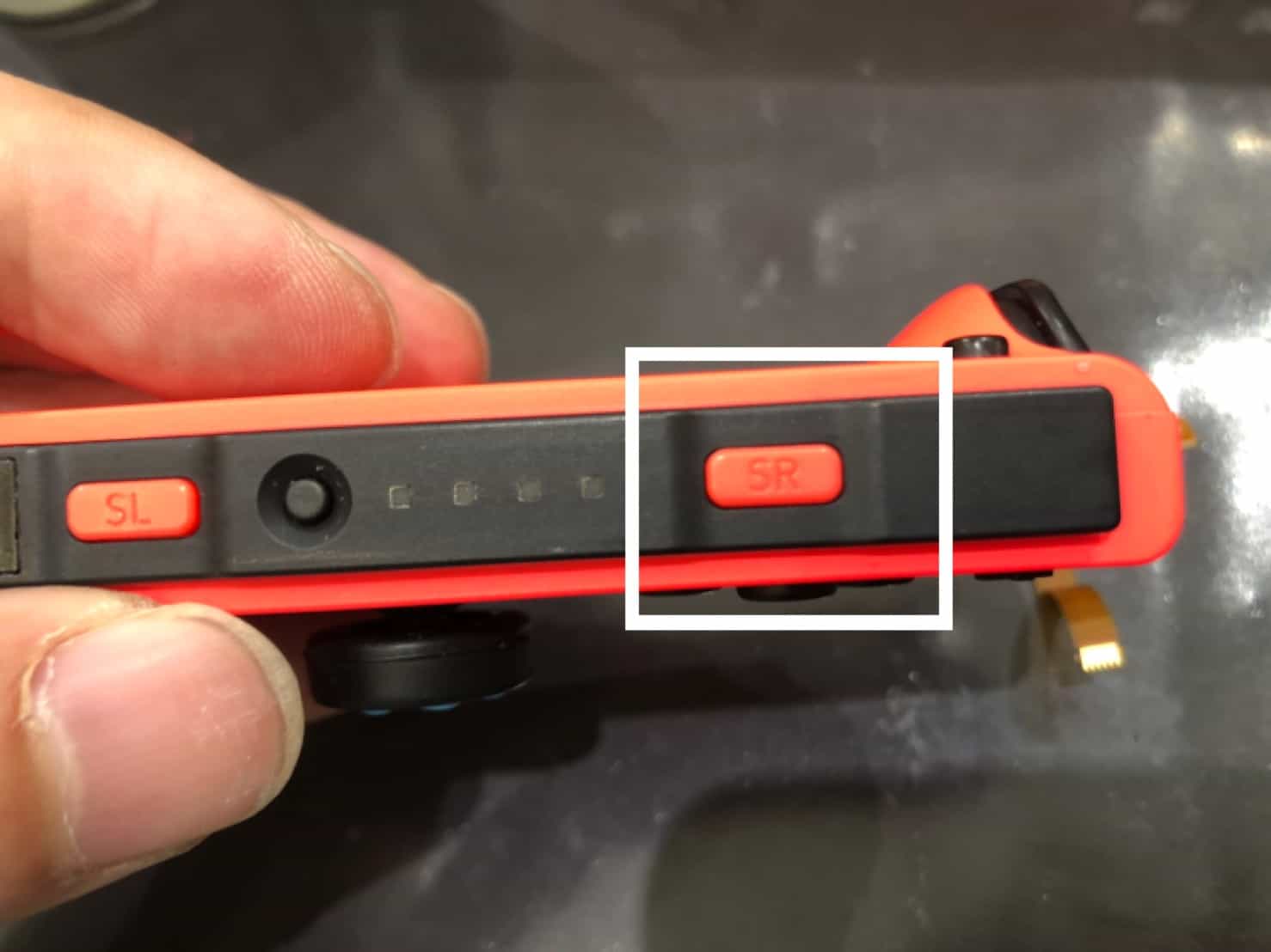 SwitchのSRボタンは、ジョイコンを本体に装着している時は隠れて見えない位置にあるボタンです。