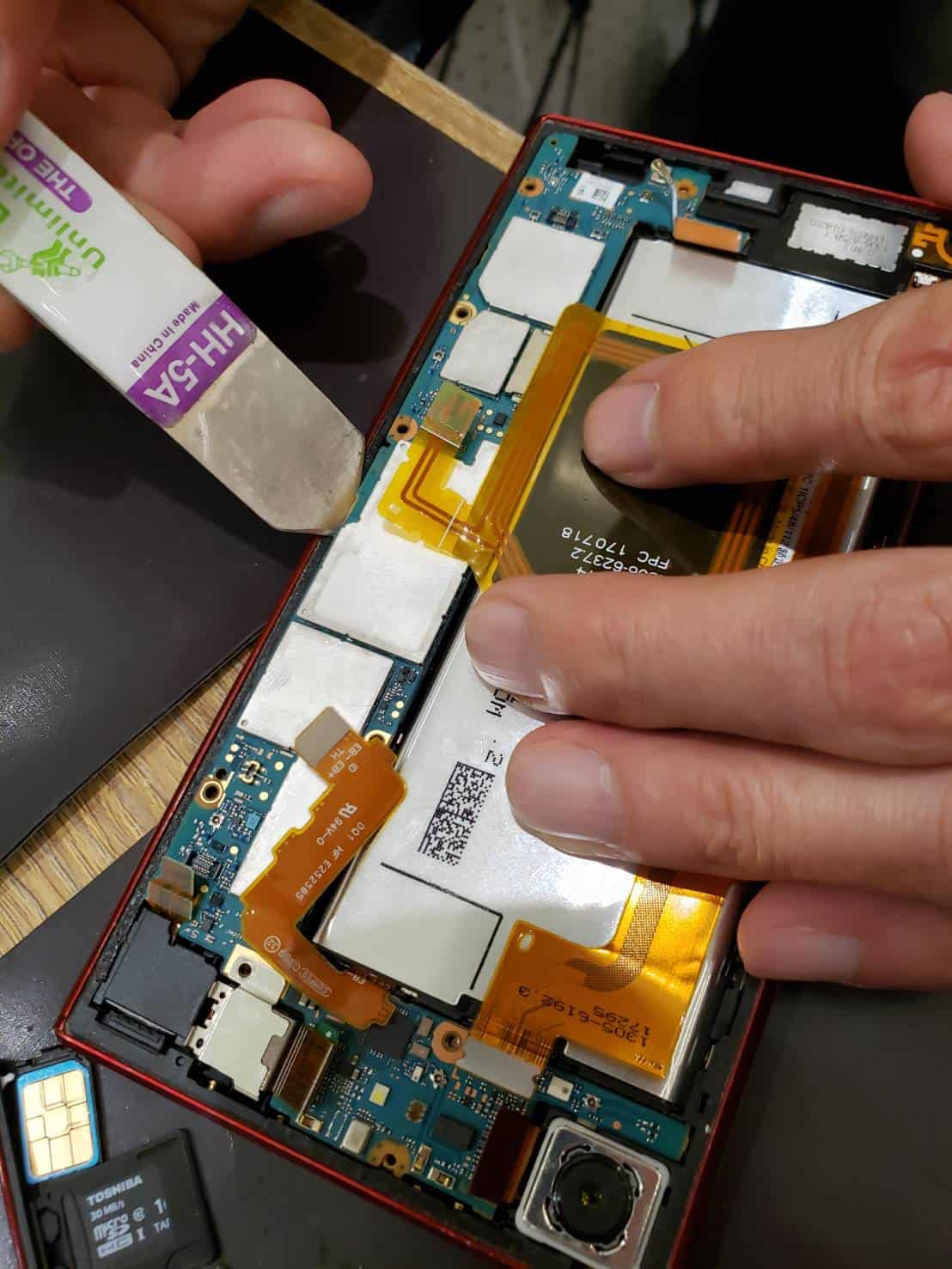 基板を外し終えたら、バッテリーも取り外していきます。