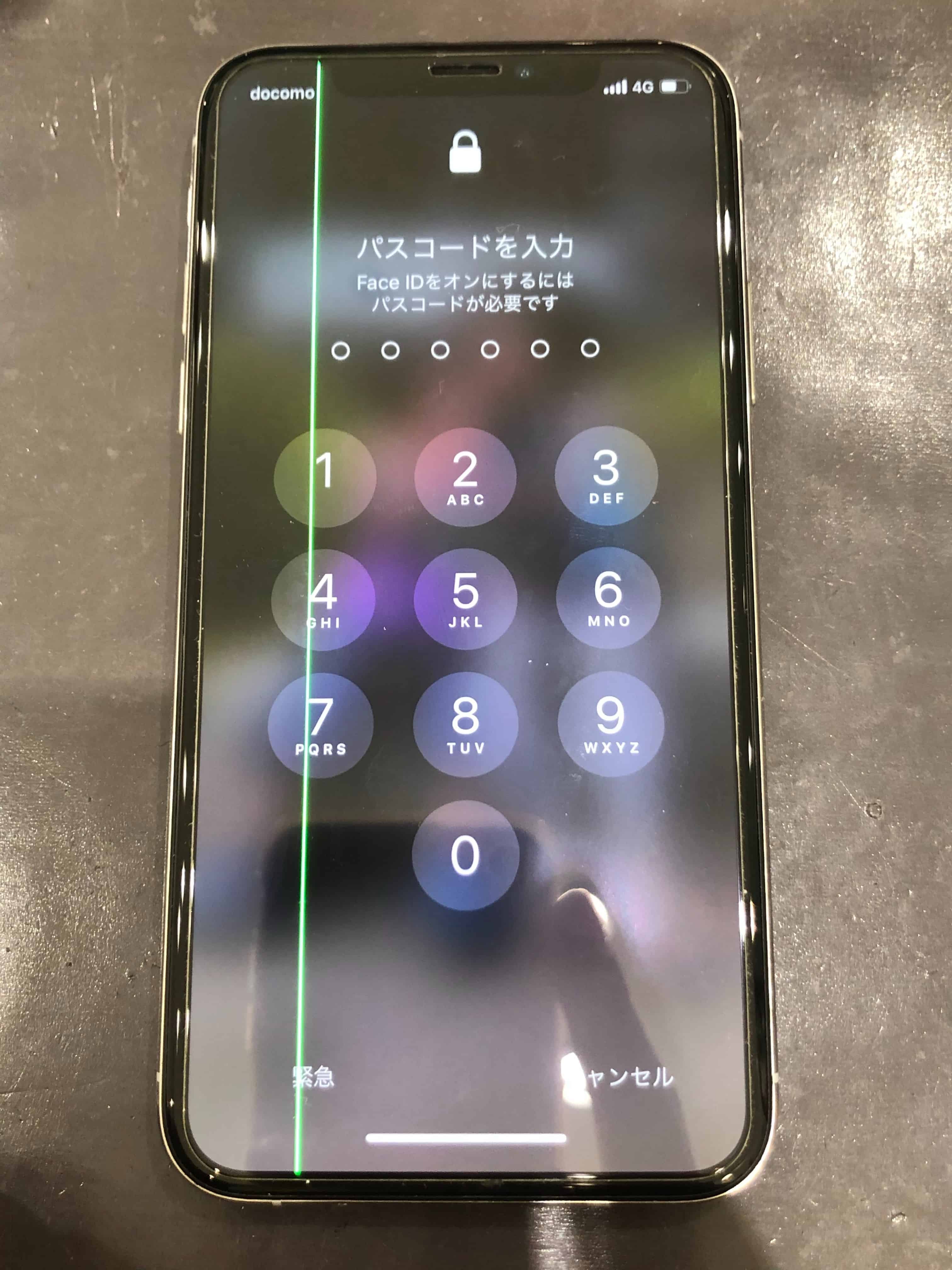 iPhone XやiPhone XS・iPhone 11Proなどで使われている有機EL(OLED)ディスプレイではこのような”画面に線が映る”故障が多発していて、当店でも毎日のようにこの症状の修理依頼が来ております!