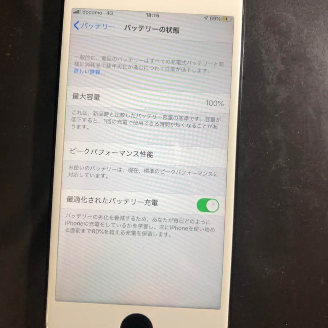 今回バッテリー交換を行うiPhone 7は最大容量60%。
