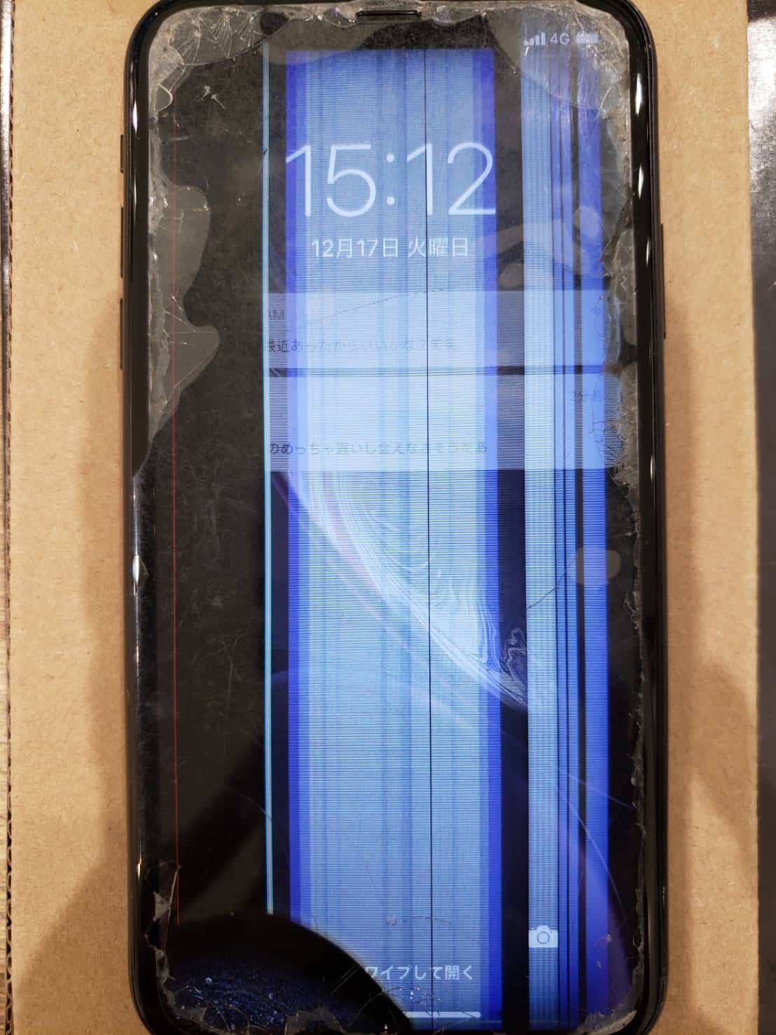 「iPhone XRを落としてしまい、タッチは出来るが液晶の半分は映らなくて、画面に線が沢山出てるのですが・・・」とお客様よりご相談いただきました。