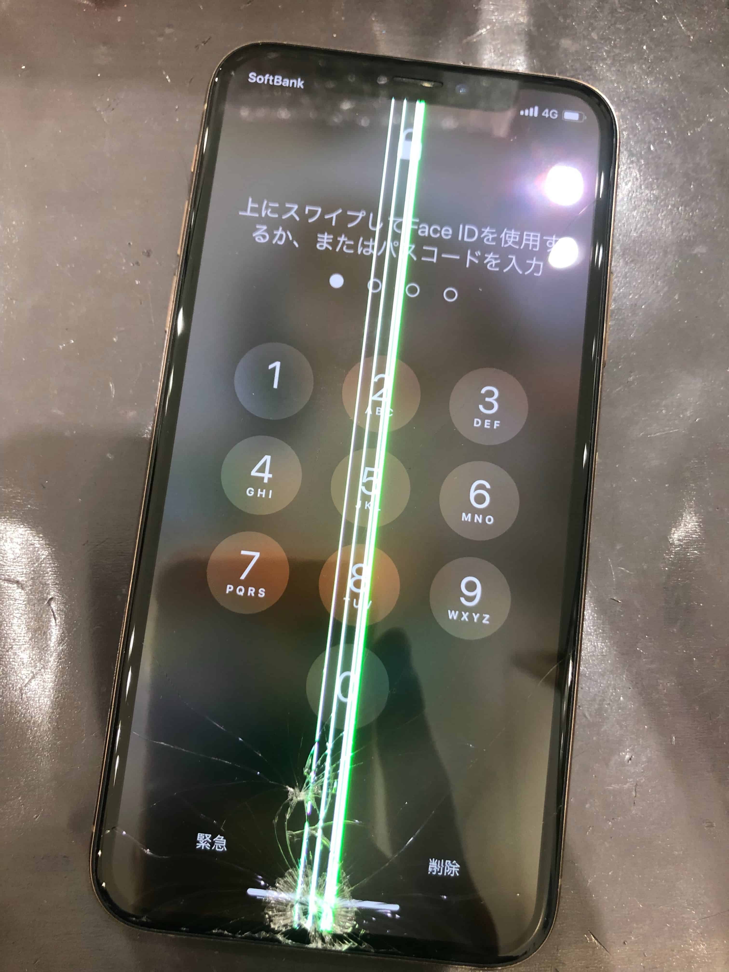 【iPhone修理】画面割れして液晶に線が出ているiPhone XS