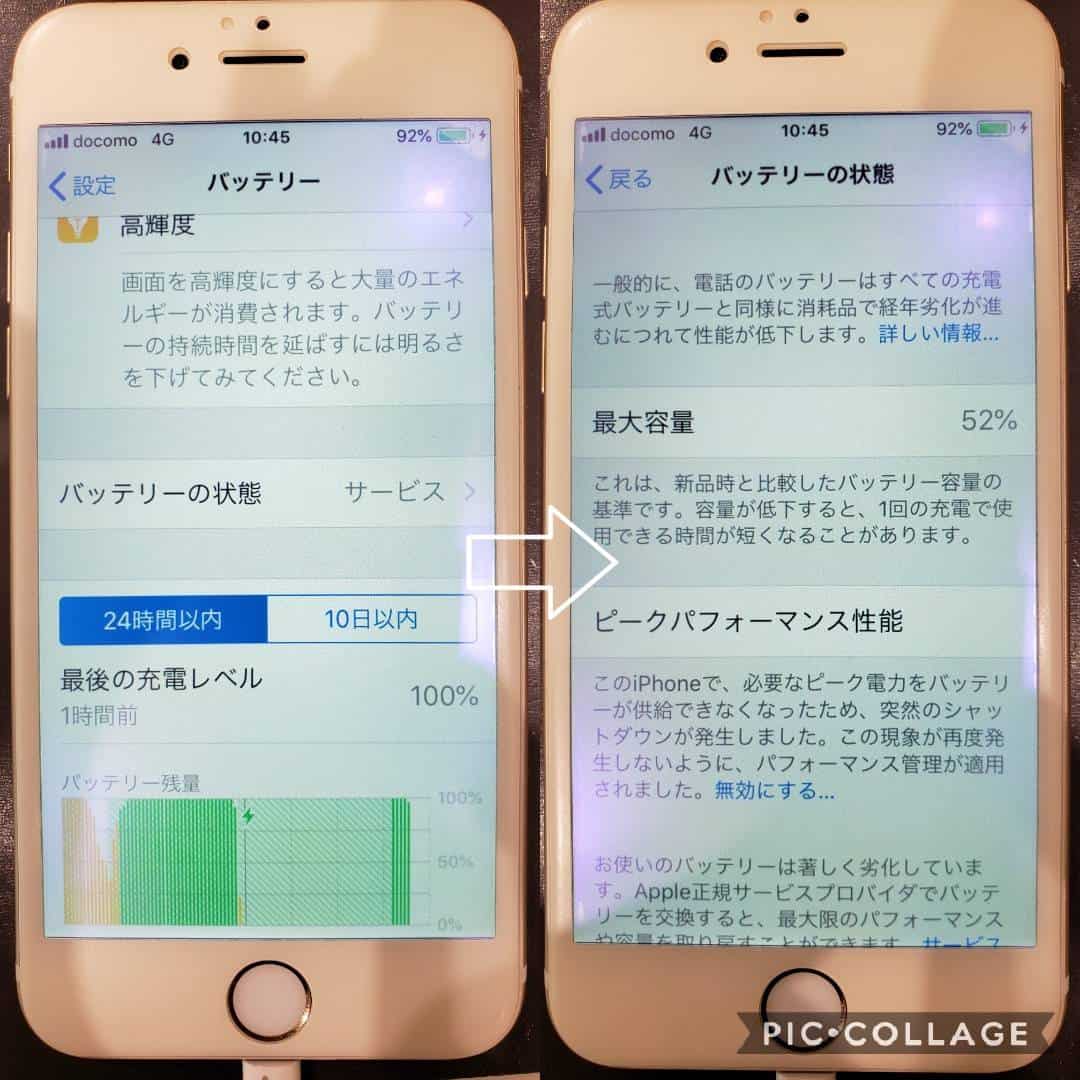この最大容量が『80%台』になっているとバッテリー交換の目安になります!(写真参照)