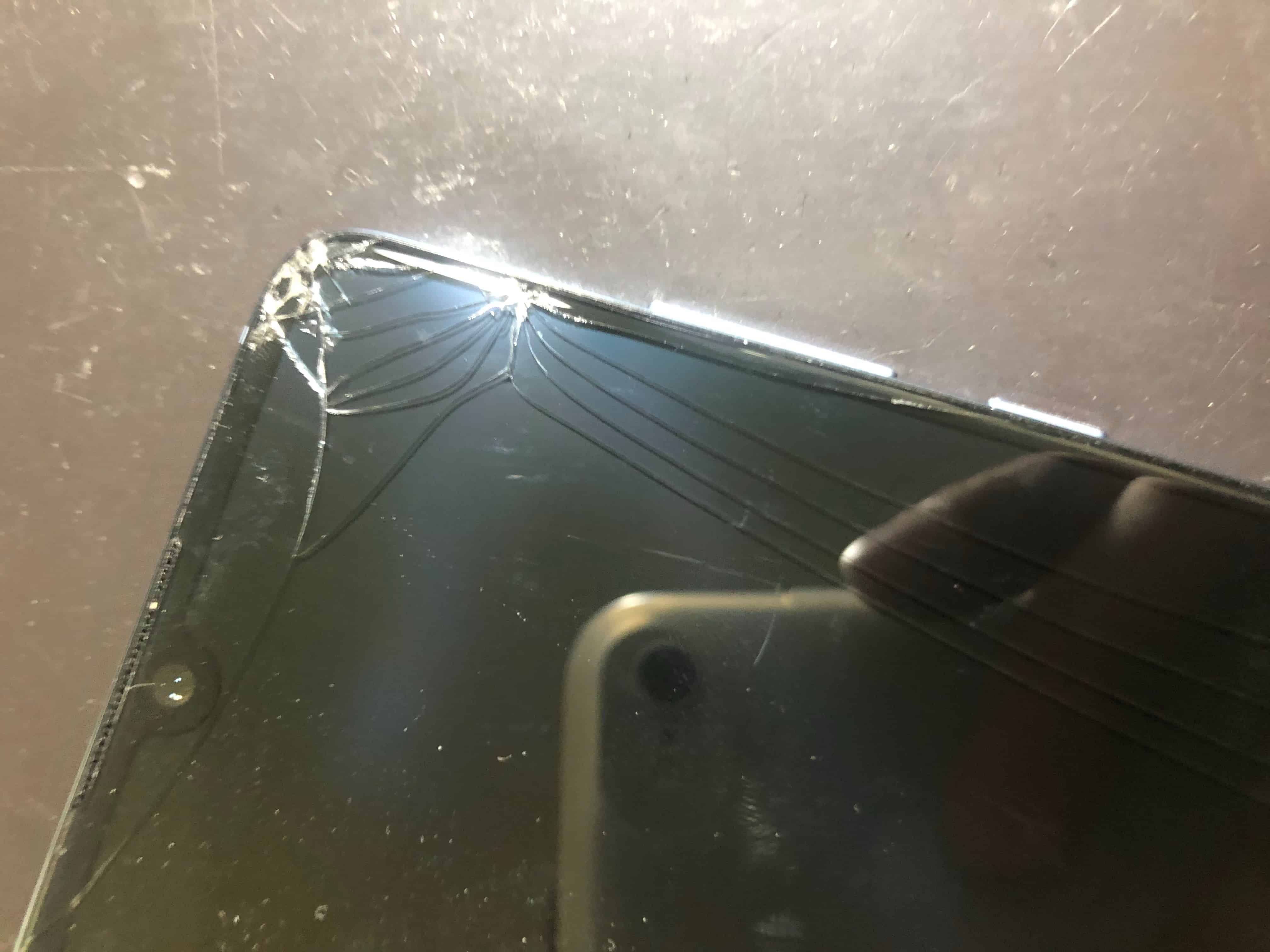 そこまでひび割れの範囲も大きくなかったのですが、画面が真っ暗で何も表示が出ない故障の状態でした。
