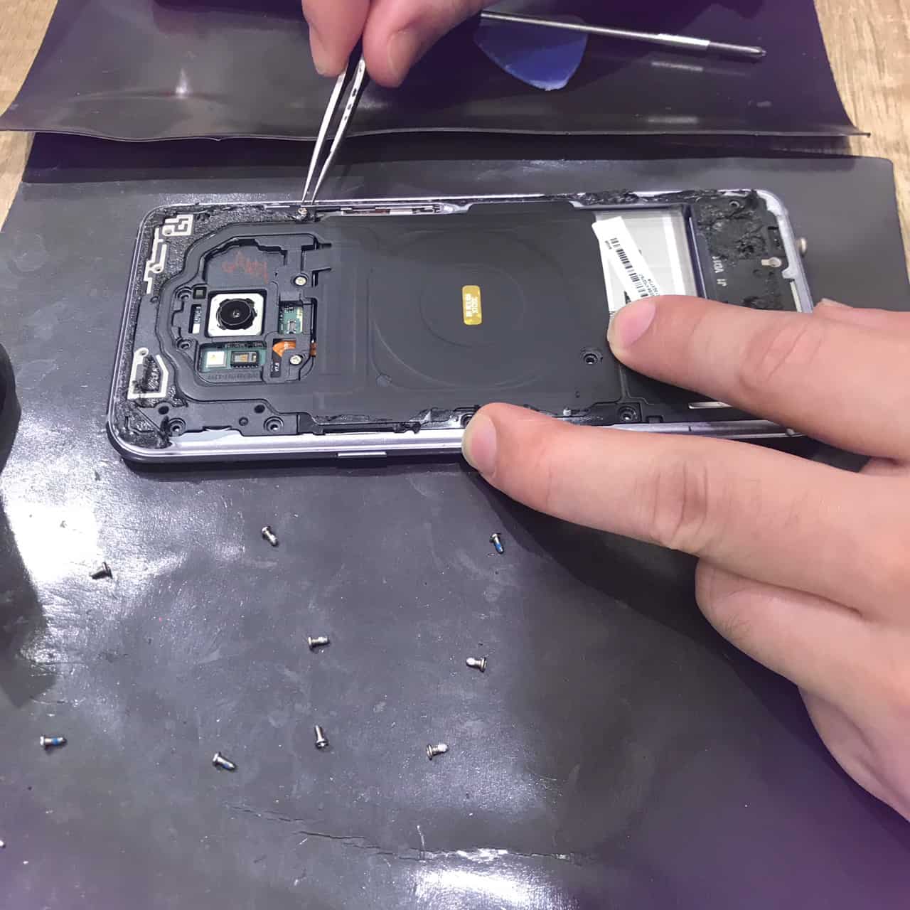 Galaxyシリーズは分解段階の過程で、背面から分解するものと液晶画面から分解しなければいけない場合の2パターンありますが、S8の場合は背面から分解する仕様になっております。