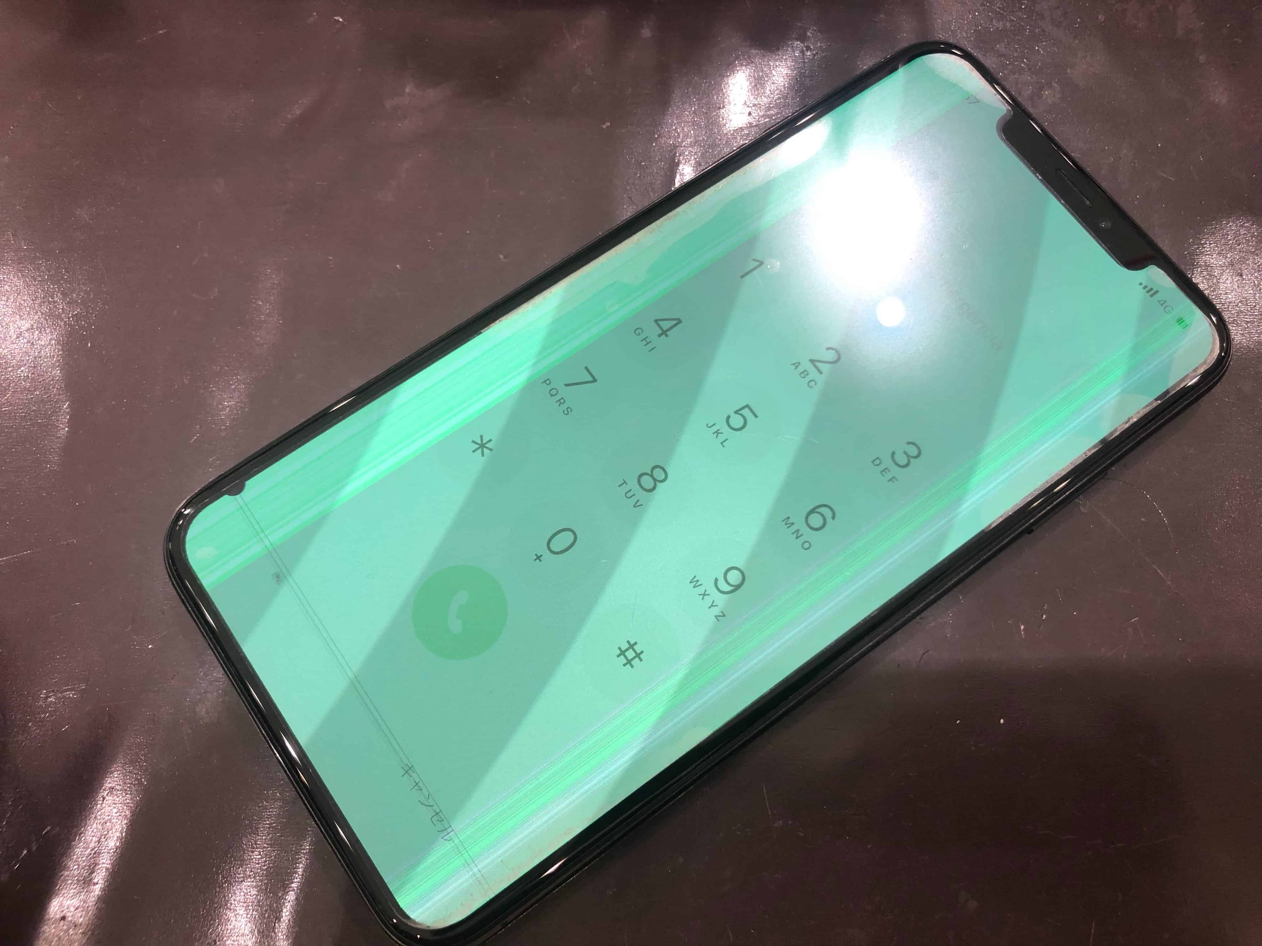 iPhone XS Maxの画面が緑に発光した故障も45分後に修理完了