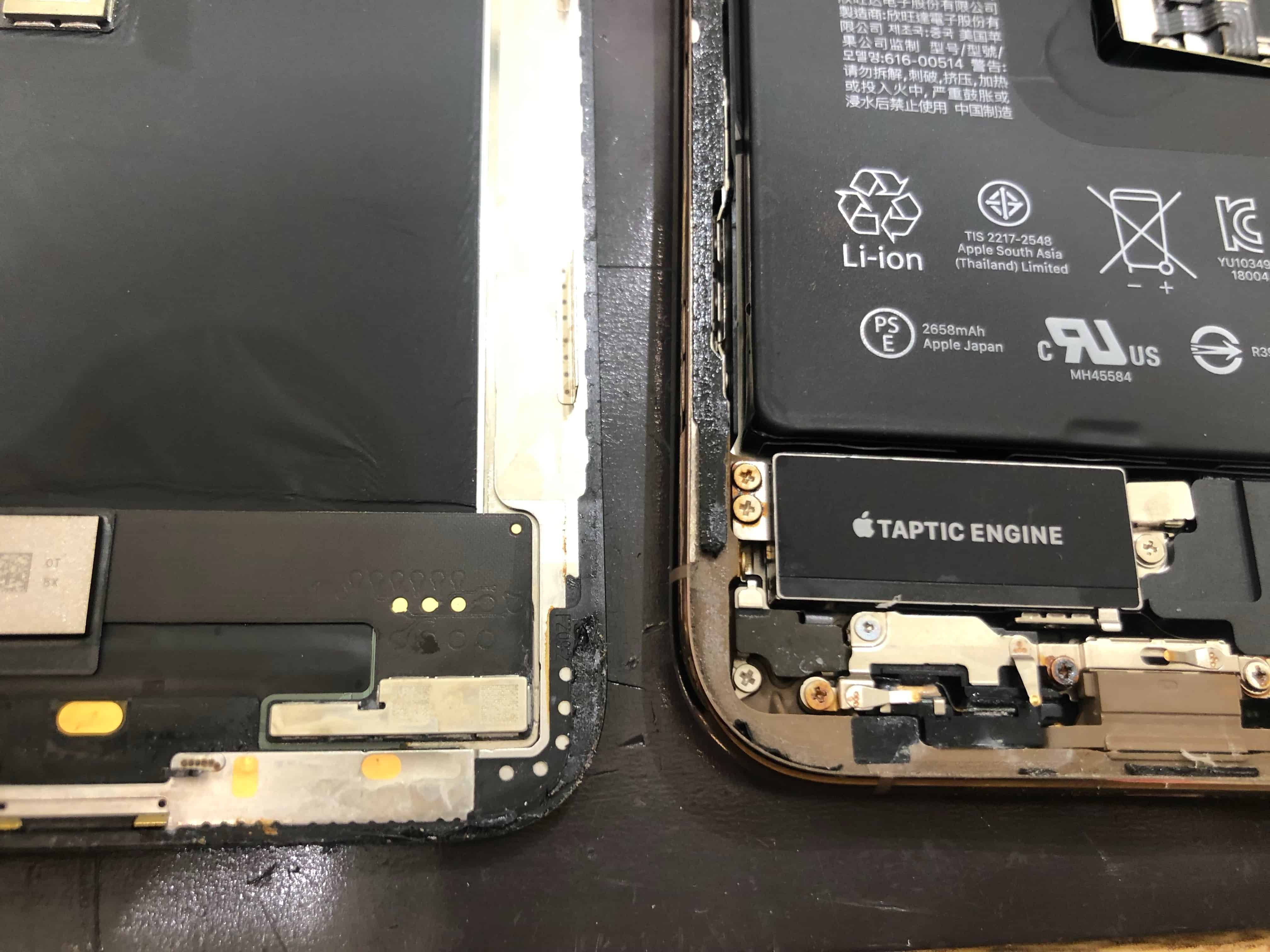 iPhone XSに使われている小型の有機ELディスプレイ自体のコストが高いので画面交換修理を伴うと修理費用がかさんでしまうという点は否めない、、、