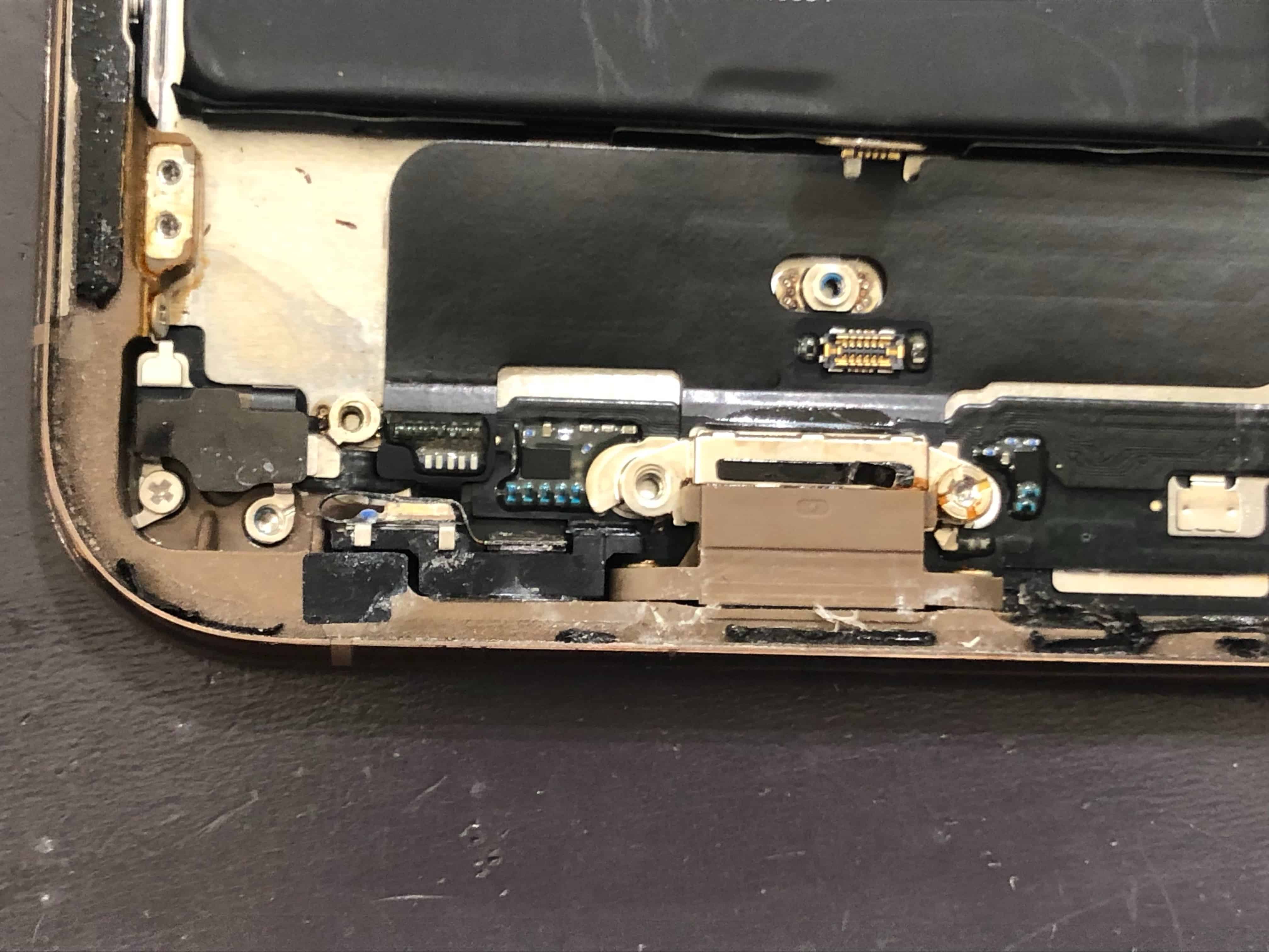 どの程度浸水してしまったのかというのが非常に鍵を握っていて、お客さん曰くiPhoneの画面真ん中より下側が浸かっていた状態だったそうだ。