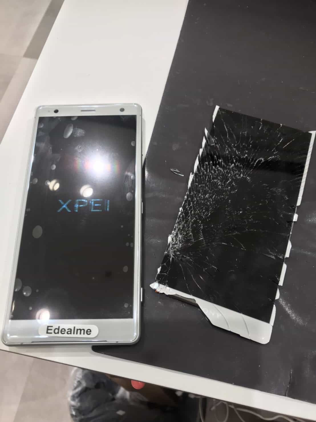 粉々にガラスが割れ、真っ暗なままのXperiaXZ2のガラス液晶交換修理で使用できるようになりました!