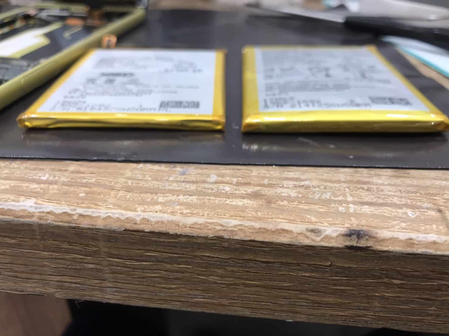 バッテリーが無事に取り外せたので、交換前の新品のバッテリーと並べて写真をとってみました!