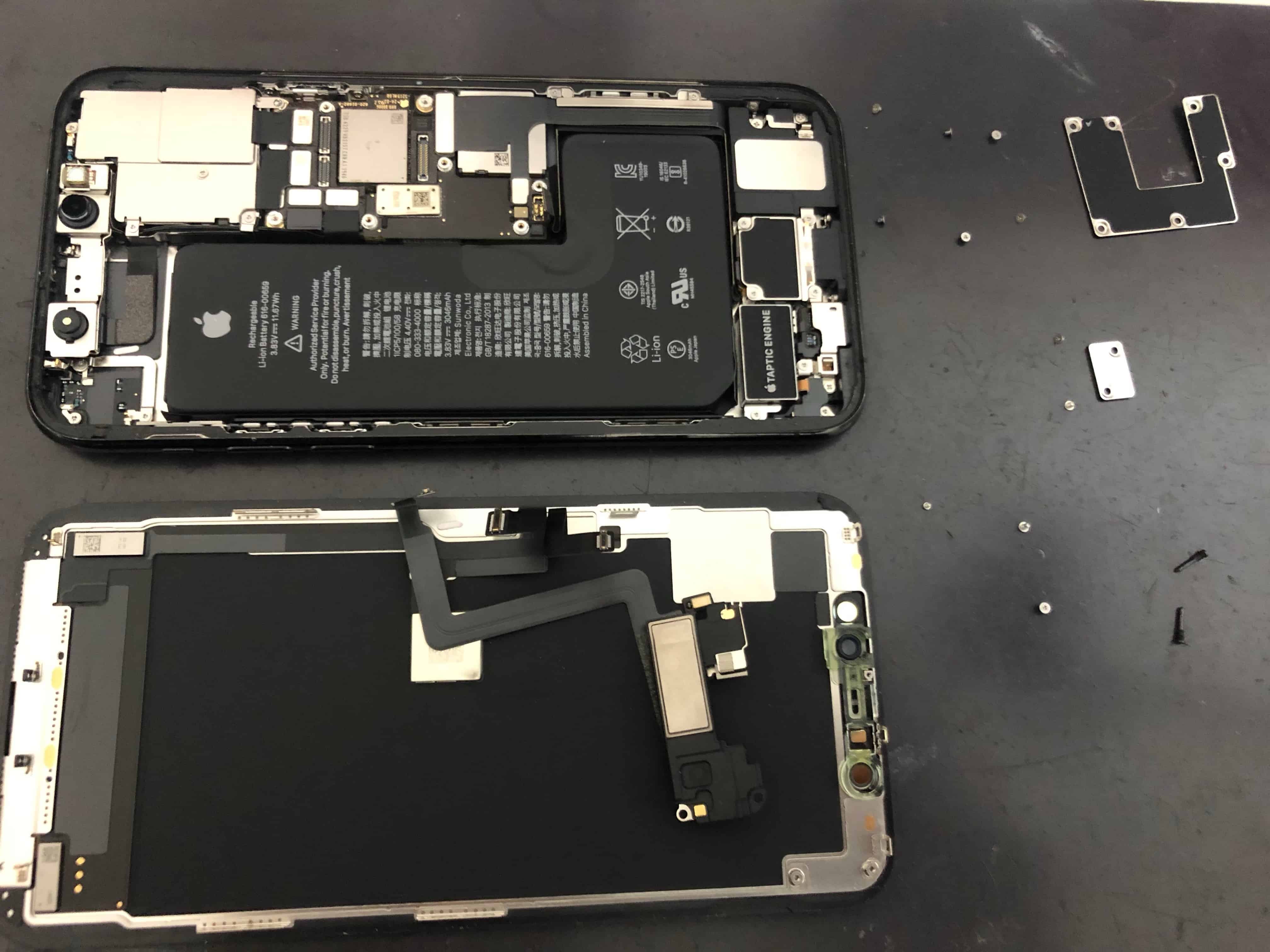 リアカメラがトリプルカメラになっているのでそれに合う形にロジックボードの形も変わりましたが、大まかな構造はiPhoneXやiPhoneXSと変わらず、画面交換の作業は容易に行えます。