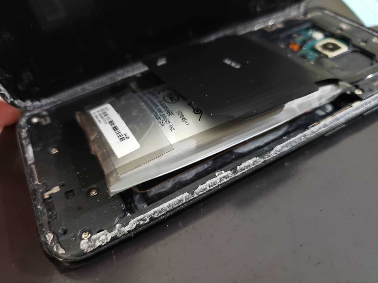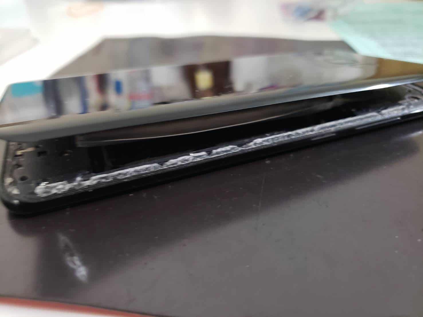 端末を診断すると、バッテリーが膨張しておりバックパネルをかなり押し上げている状態でした。