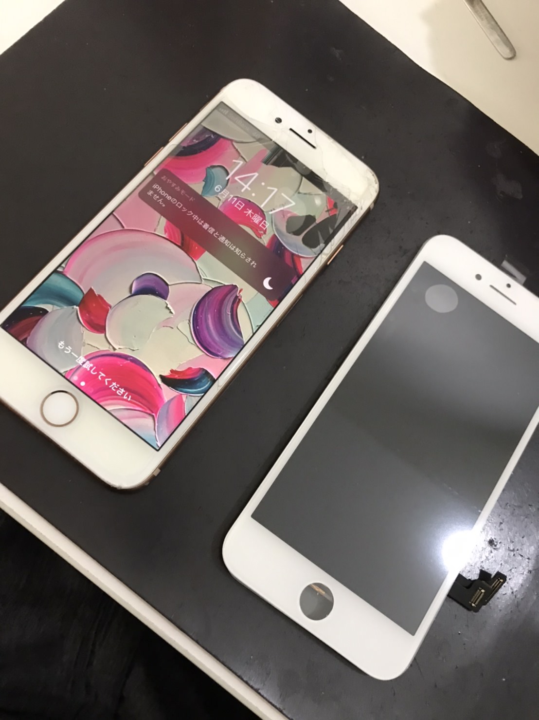 液晶に黒いシミが!?iPhone8を落として画面故障させてしまった方の修理