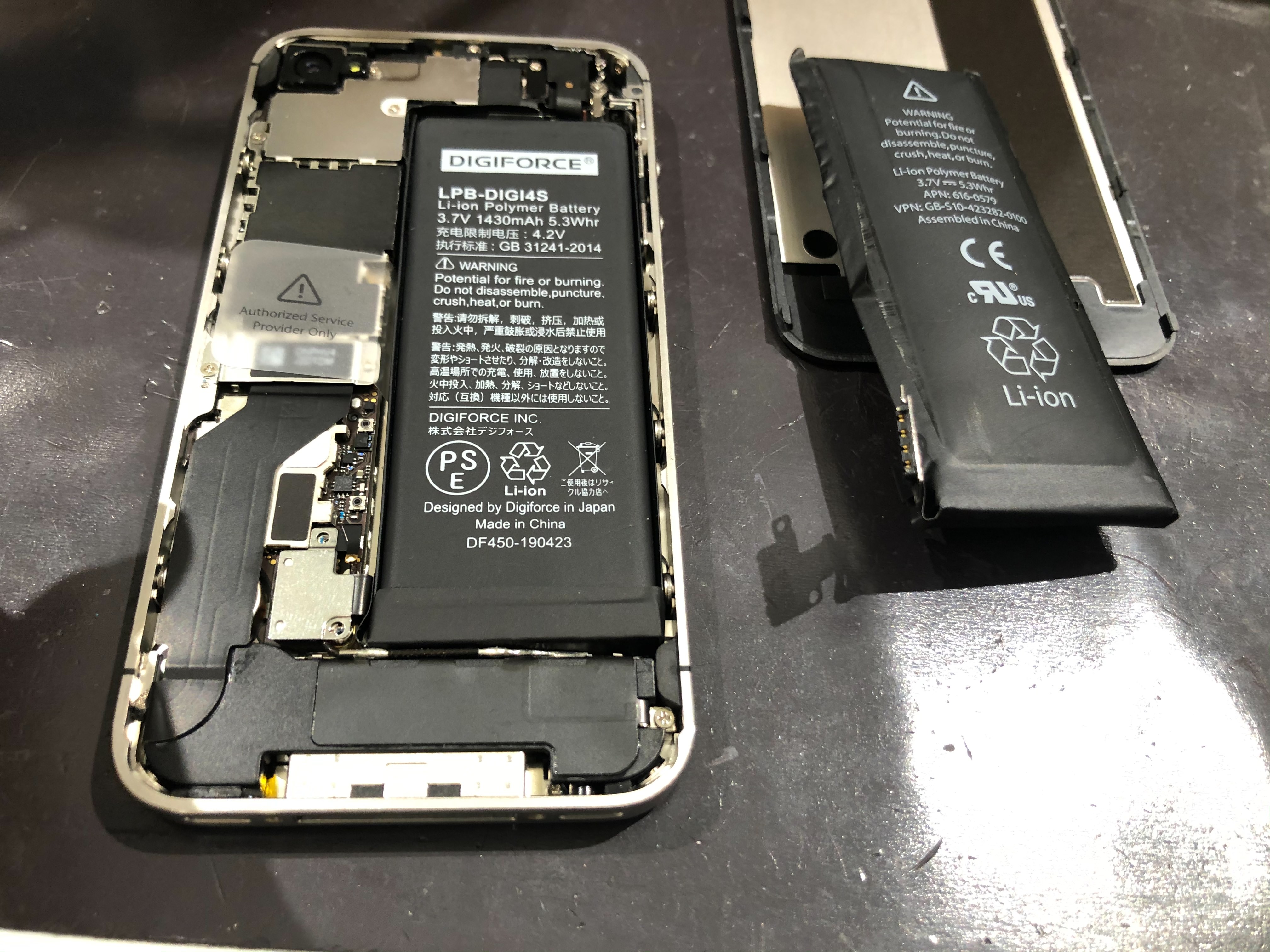 今回作業したiPhone4Sは持ち込み時から結構膨らんでいる状態でした。