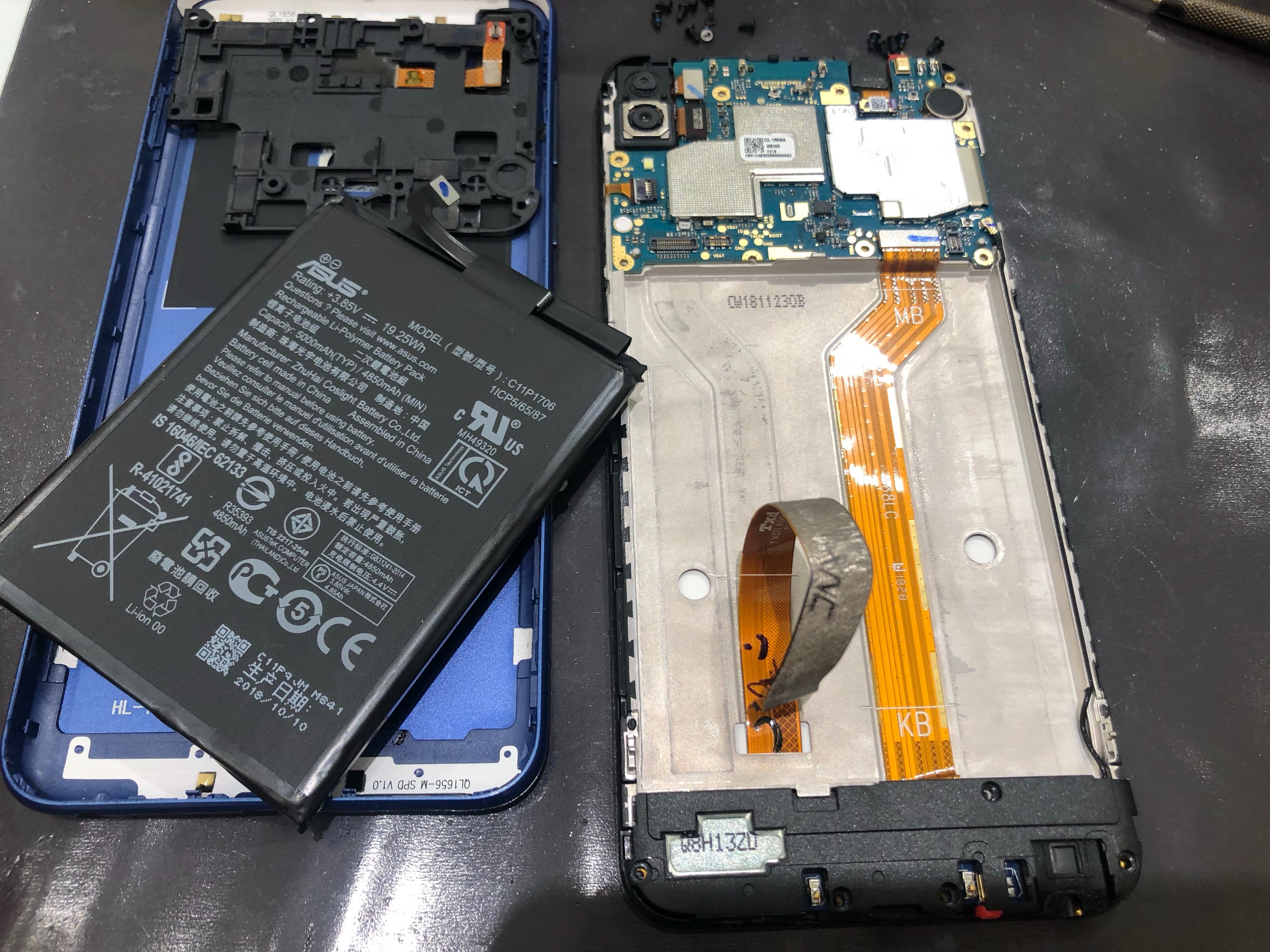 機種がZenFone Max Pro(M1)というものでこちらは通常の修理メニューではご用意していない機種だったのですが、提携のパーツ工場より修理部品の調達が可能でしたので時間をいただければパーツ調達が可能です(2~4週間)。