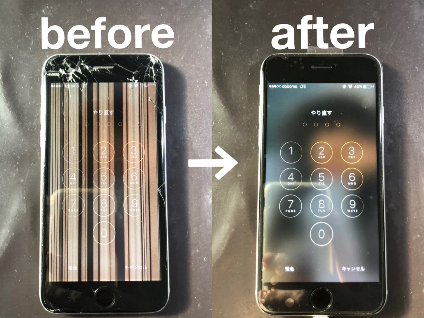 画面が割れたときに液晶までおかしくなってしまって、これはまずい!と駆け込みでスマホスピタルまで来てくれました!
