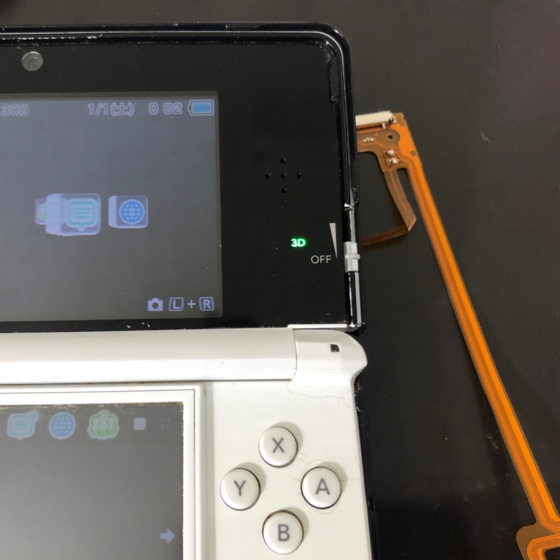 こちらの3D表示のスイッチの効きが悪い場合は「スピーカーフレックスケーブル」という箇所の交換によって修理が出来ます。