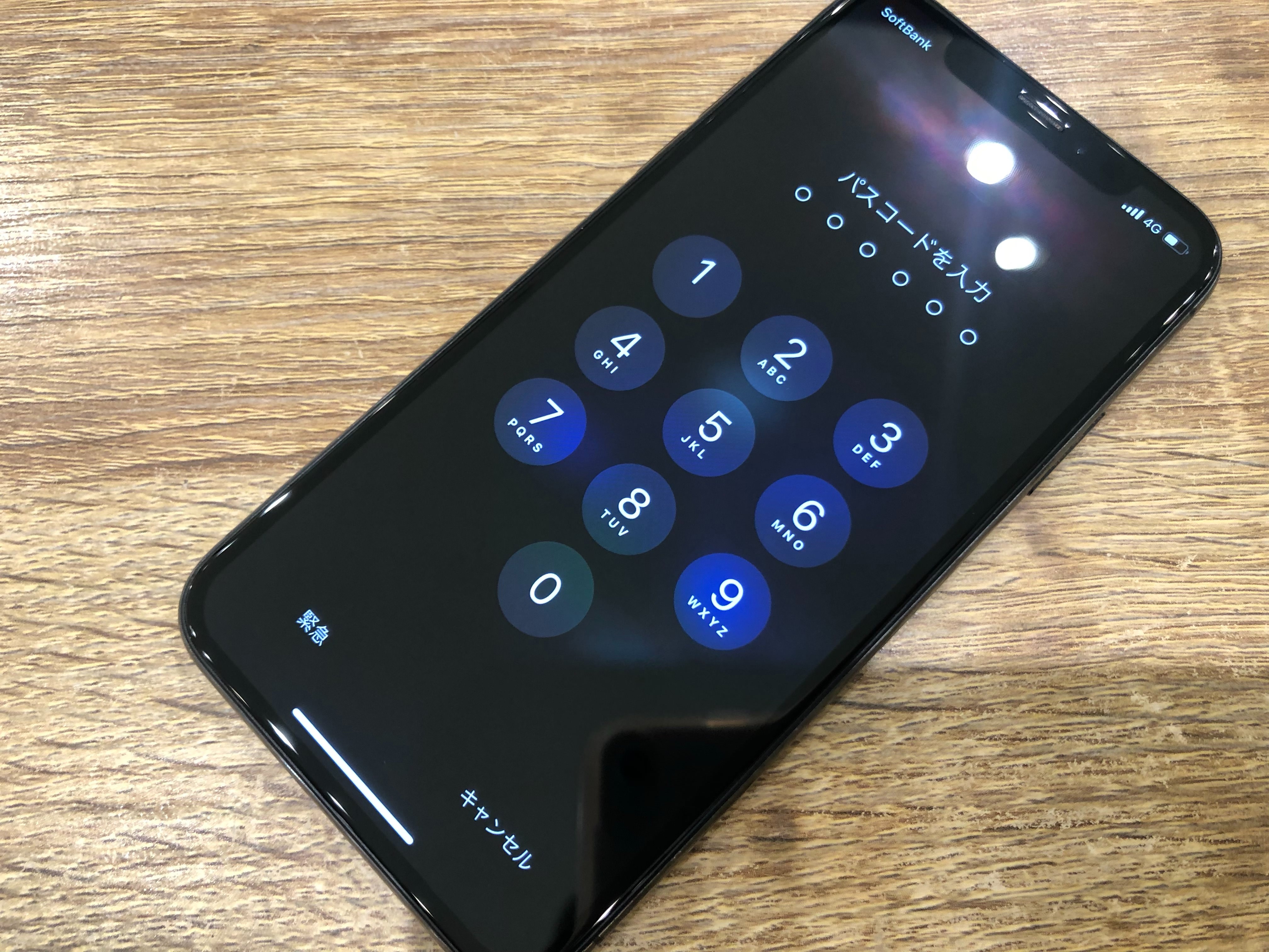 今回修理を依頼いただいた、iPhone 11の場合は、ほとんどが見えていませんが右下だけうっすら光が見えます。
