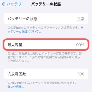 この最大容量の%は、iPhoneのバッテリー交換をする上でとても重要な役割があります。