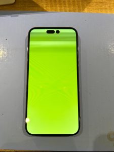 iPhoneが水に濡れてしまった後にこのような緑のおかしな画面になってしまったとの事でした。
