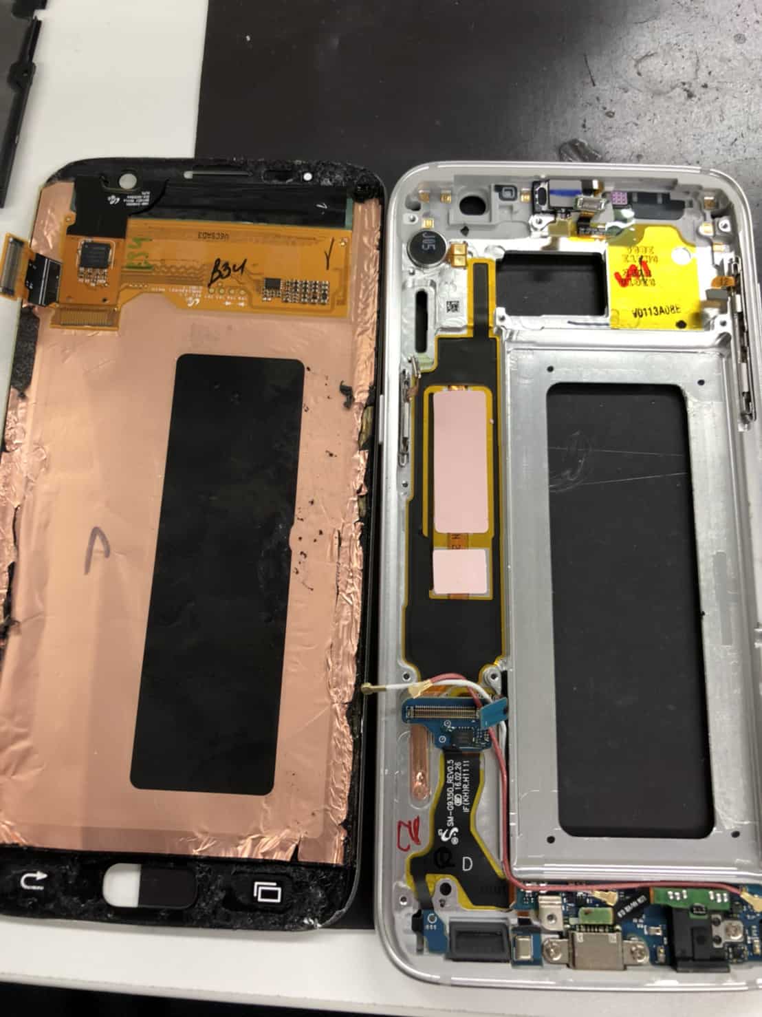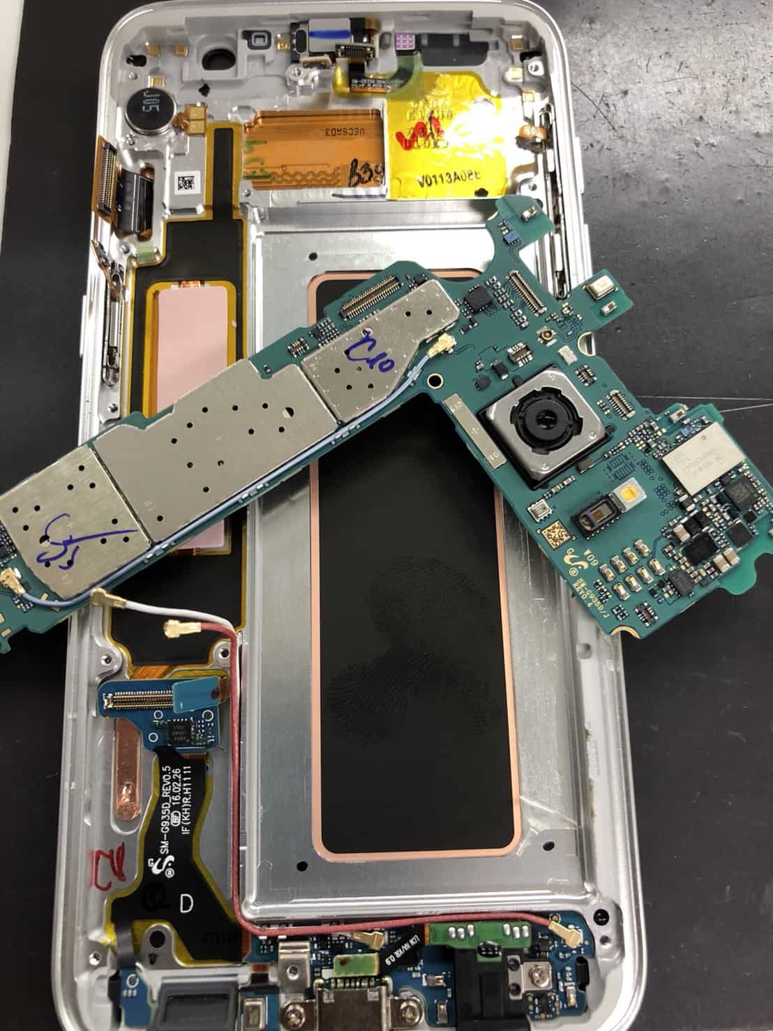 Galaxy S7edgeは背面パネルを外した後、バッテリーや基盤を取り外して最後にフロントパネルを剥していくので、修理時間はiPhoneよりも多めに頂いています。