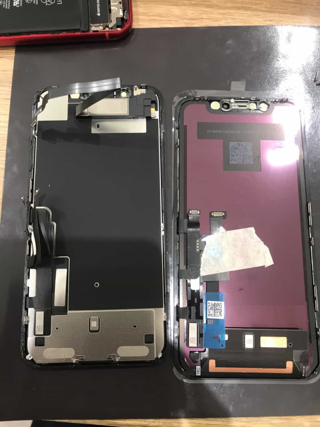 右側が新しい液晶パネルです、iPhone XやiPhone XsやiPhone Xs Maxは有機ELディスプレイですが、