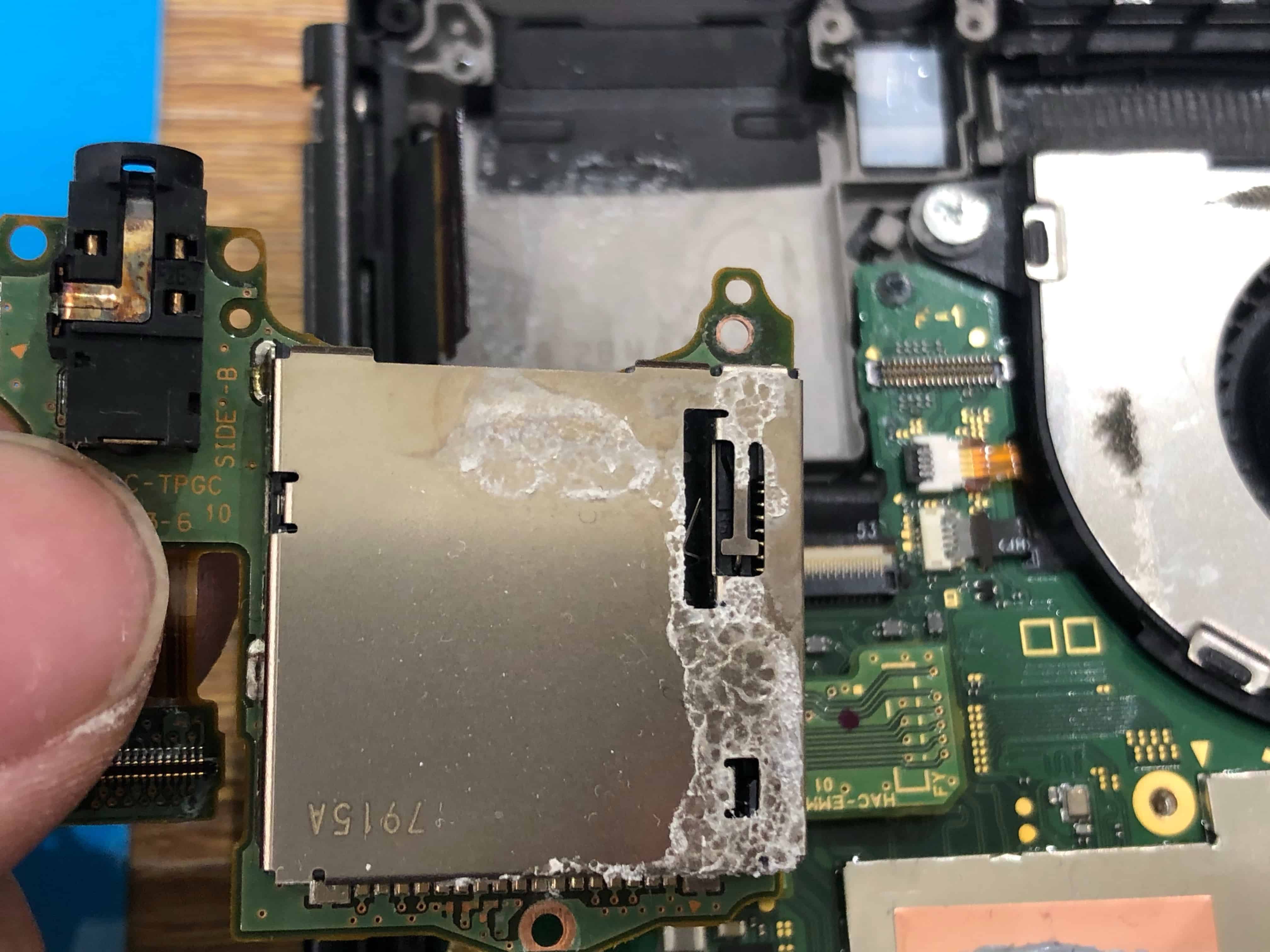 こちらのゲームカードの読み取り部品も水没の餌食になっています。