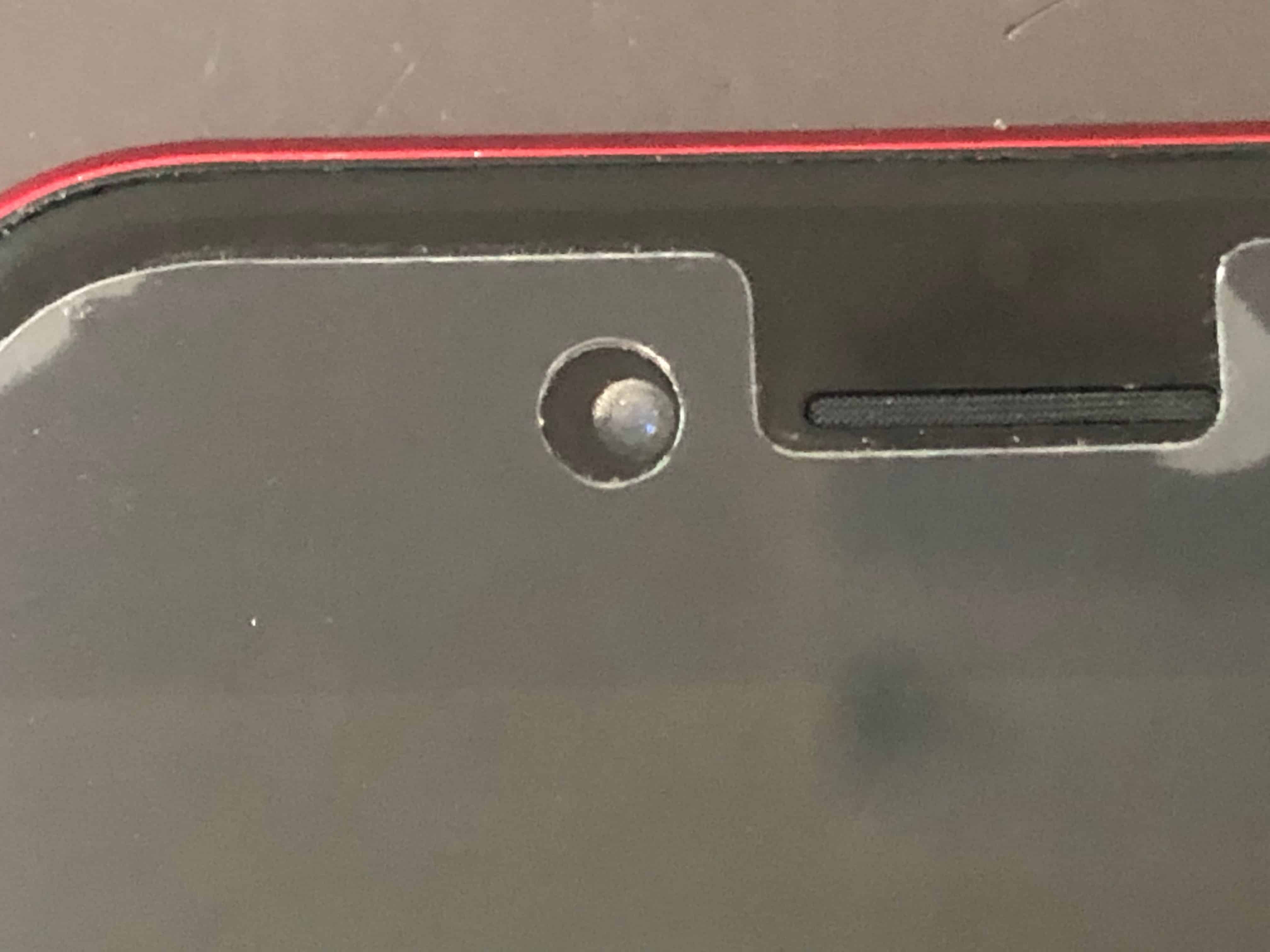 さらに、インカメラのレンズ部分も水滴が付着して曇っている状態なので、内部を見る前から水没状態なのはほぼ確信出来ます。